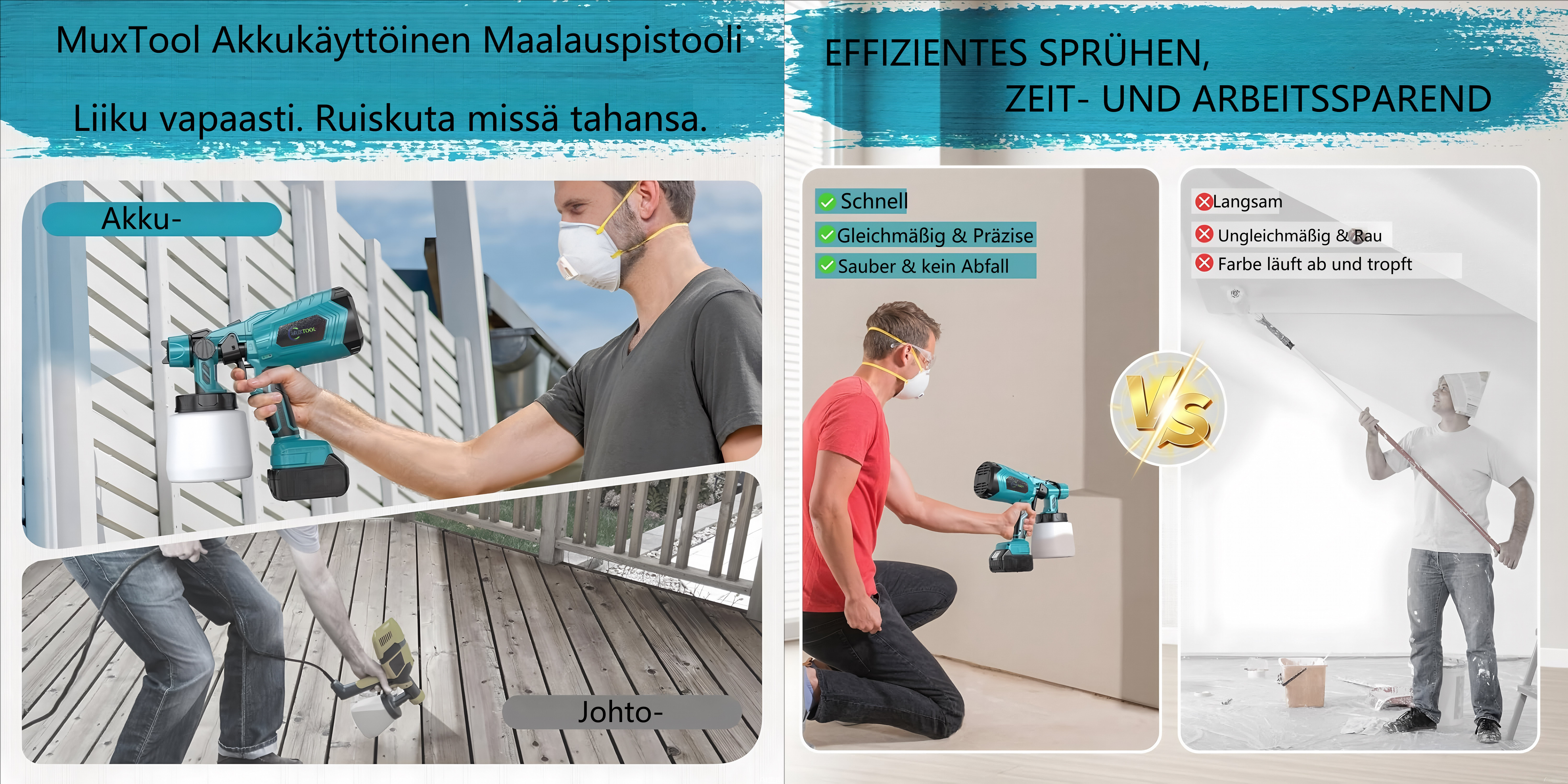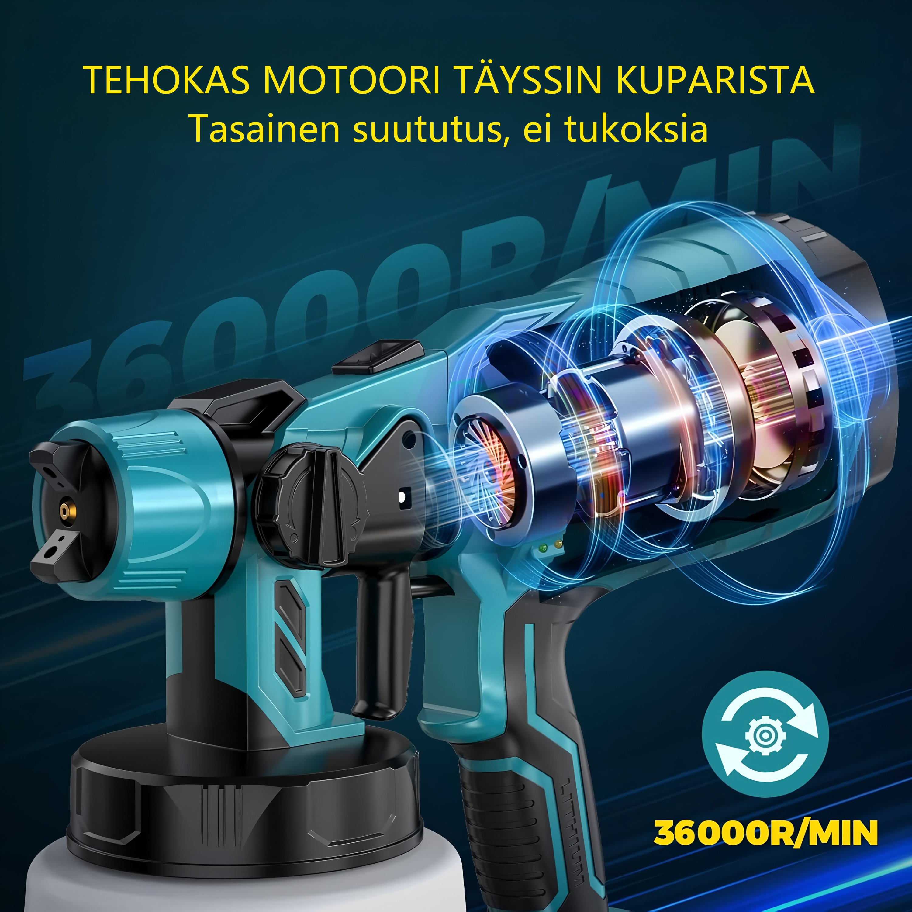 Tämä maaliruiskutuote ylitti odotukseni! Ilmanpaine-tekniikka antoi tasaisen ja siistin pinnan, mikä teki maalauksesta erittäin helpon. Langaton ja kevyt suunnittelu teki siitä vieläkin kätevämmän. Kodistani näyttää nyt todella uudelta - lämpimästi suositeltu!