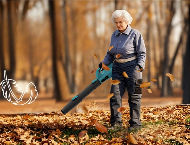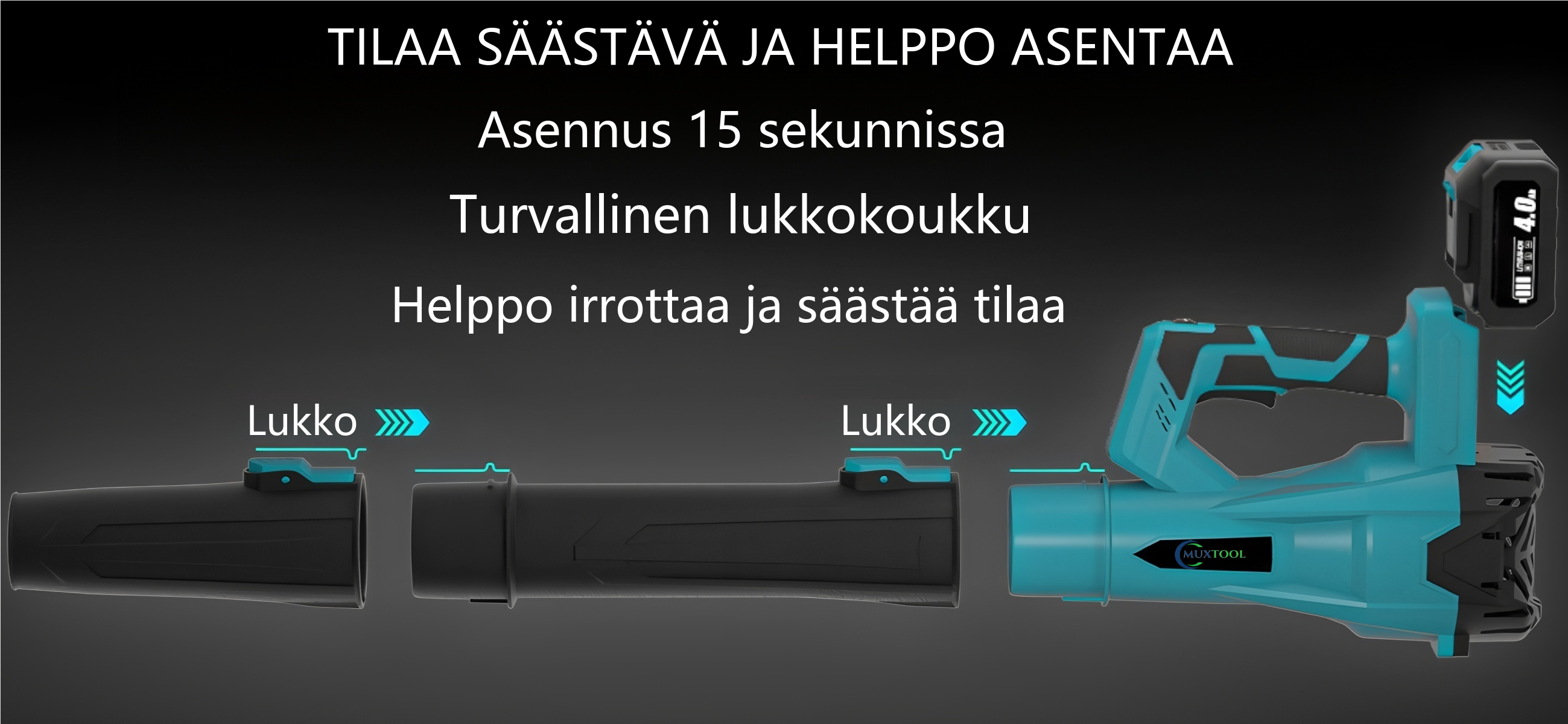 21V langaton 6-nopeusasteinen lapupuhallin: Nopeaan ja tehokkaaseen piha- & terassisiivoukseen – mukana 2 akkua