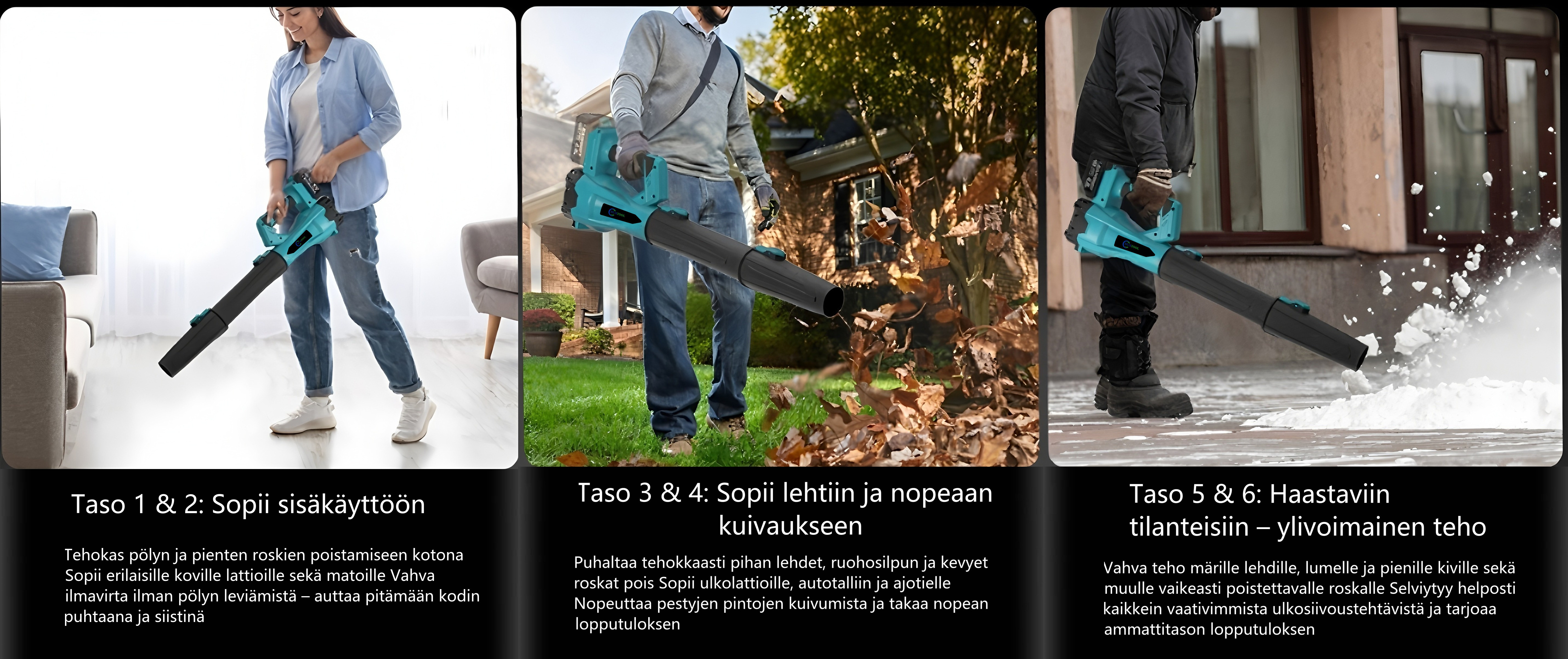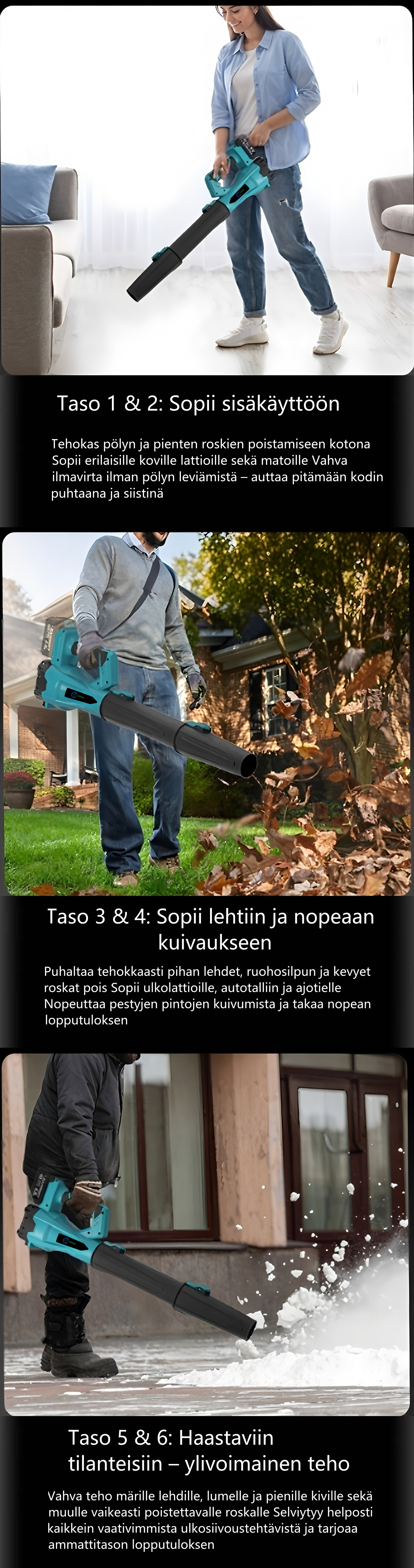 Taso 3-4: Voimakas puutarhan lehtien puhdistus ja nopea pinta-kuivaus