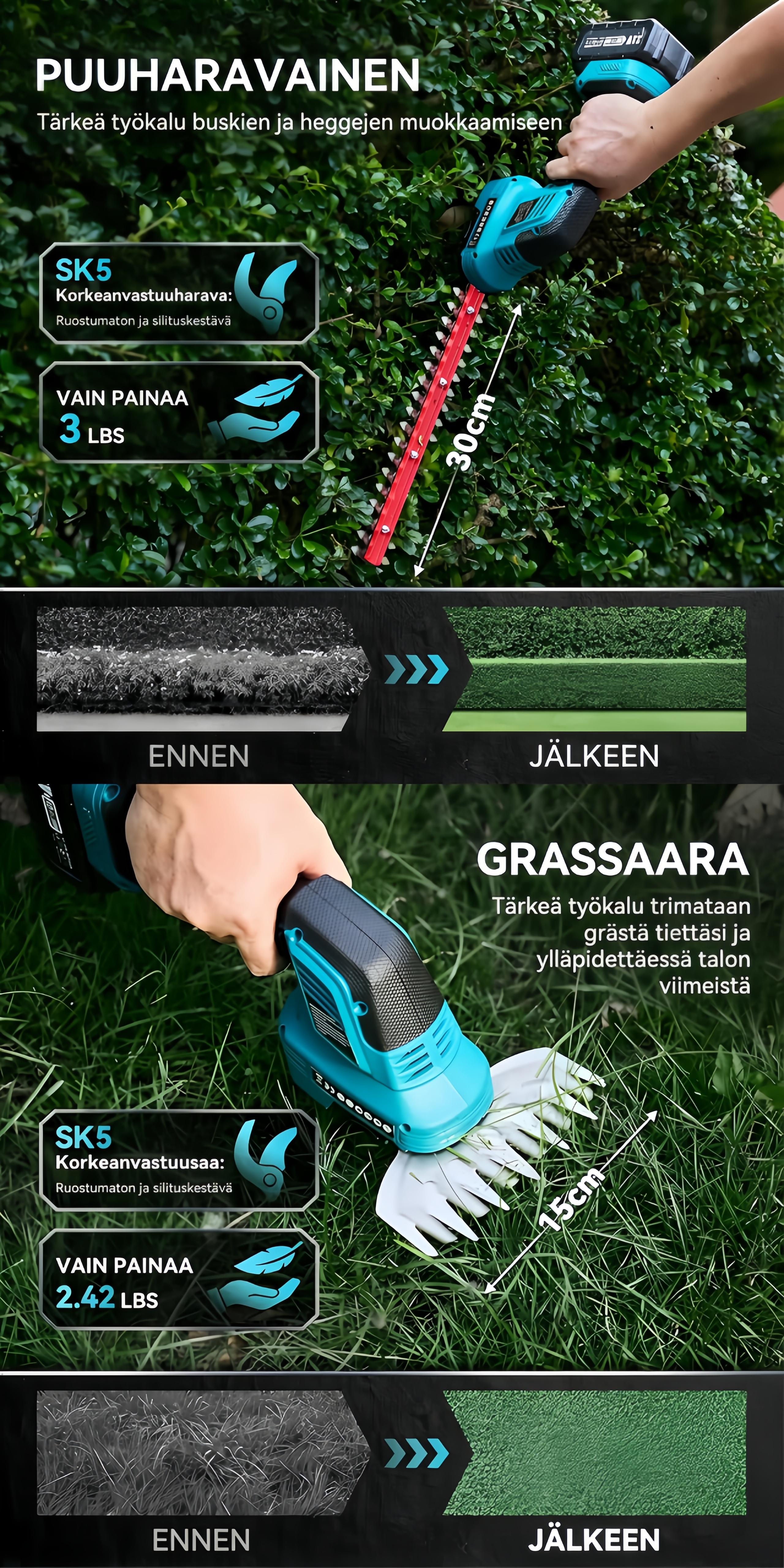 2‑in‑1 langaton ruohon- ja pensasleikkuri, 2 akkua – kevyt ja kompakti puutarhaleikkuri 2‑in‑1 langaton ruohon- ja pensasleikkuri, 2 akkua – kevyt ja kompakti puutarhaleikkuri 2‑in‑1 langaton ruohon- ja pensasleikkuri, 2 akkua – kevyt ja kompakti puutarhaleikkuri 2‑in‑1 langaton ruohon- ja pensasleikkuri, 2 akkua – kevyt ja kompakti puutarhaleikkuri